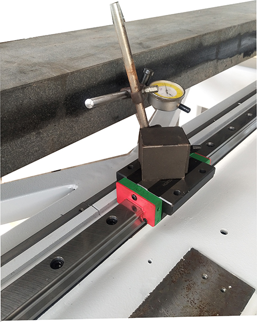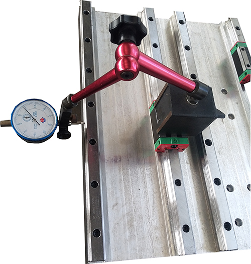 每根导轨安装时均打表检测导轨的平行度。