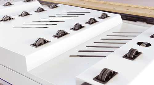 上料滚轮装置,减小板材与台面的摩擦,保护板材表面。